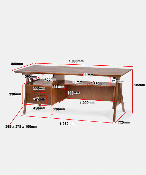 w 1,800 x d 800 x h 735 mm
