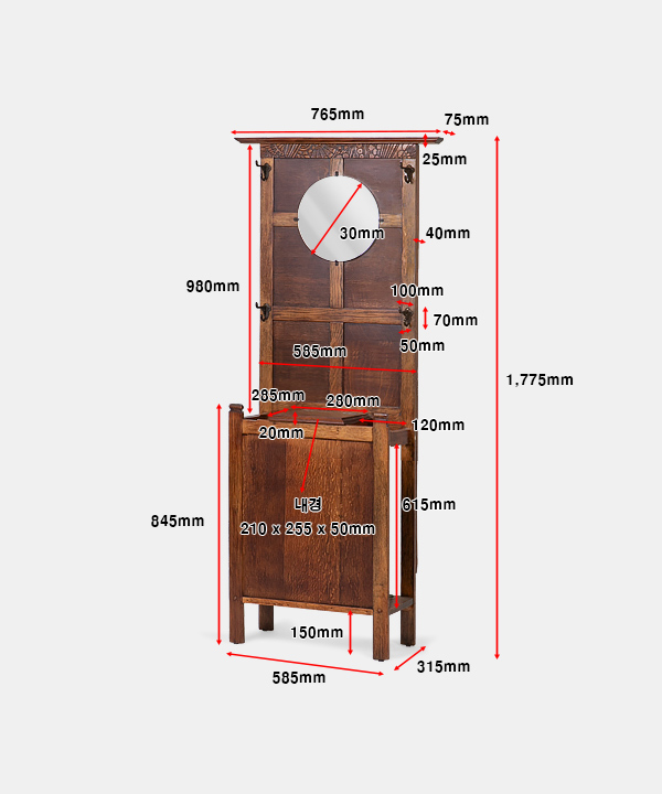 w 765 x d 315 x h 1,775 mm