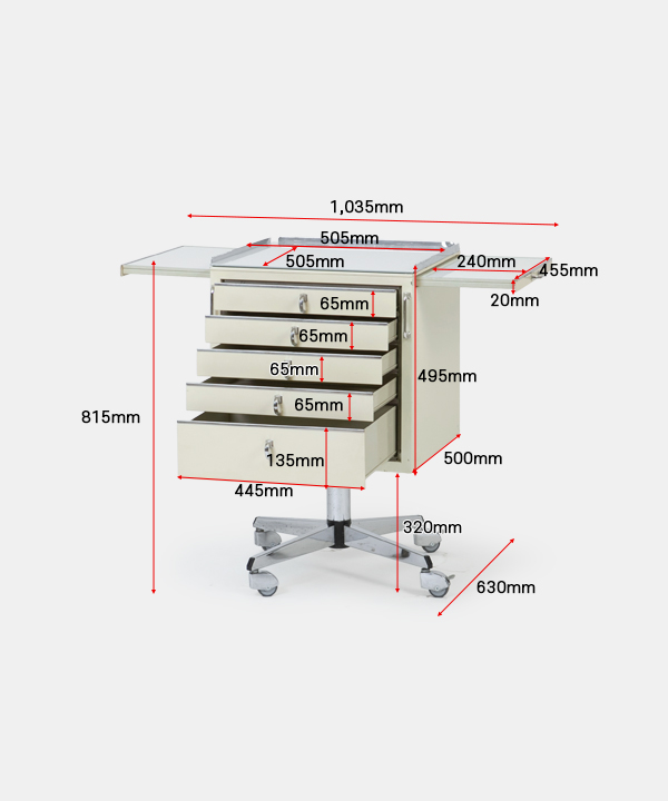 w 505~1,035 x d 630 x h 815 mm
