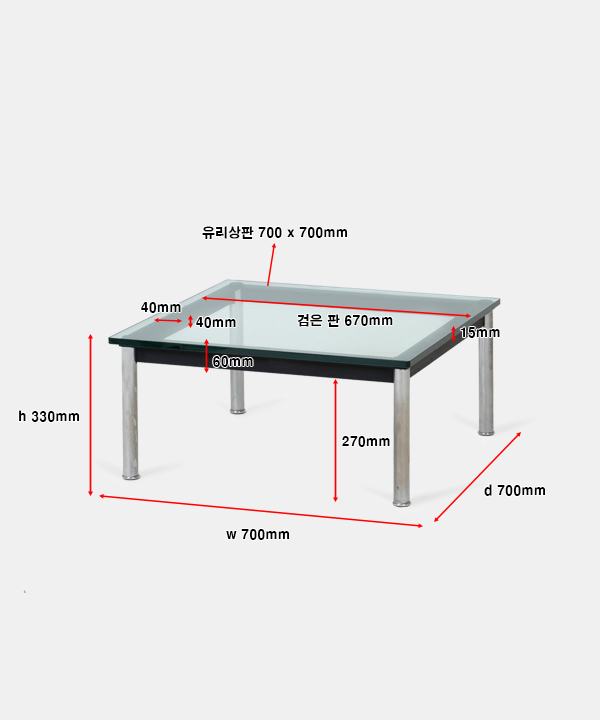 w 700 x d 700 x h 330 mm 유리두께 : 15 mm