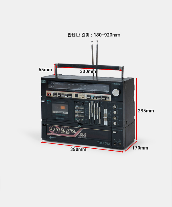 w 390 x d 170 x h 340 mm (손잡이 세운 높이)