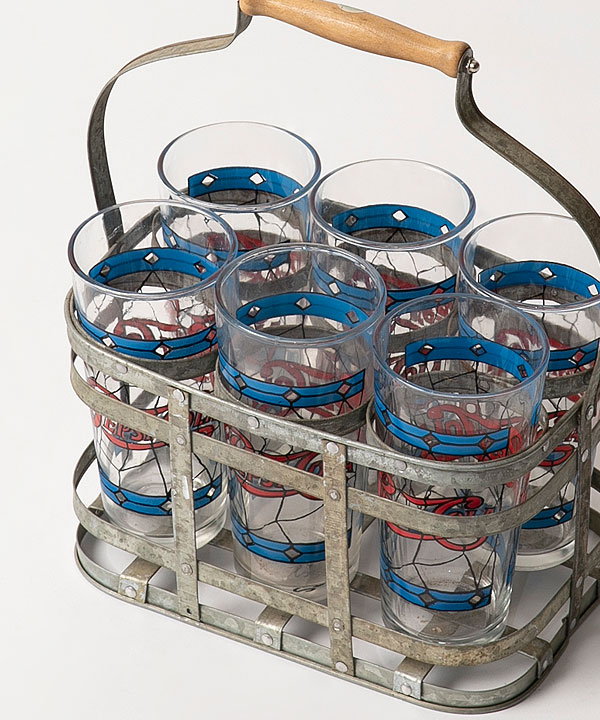 w 27 x d 16 x h 30 cm (컵 Ø 8 x h 17 cm) vintage / 6 glass & carrier set