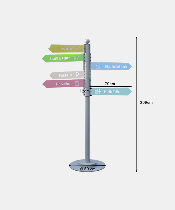 전체 : w Ø 60 x h 209 cm / 한개 팻말 : w 70 x h 12 cm