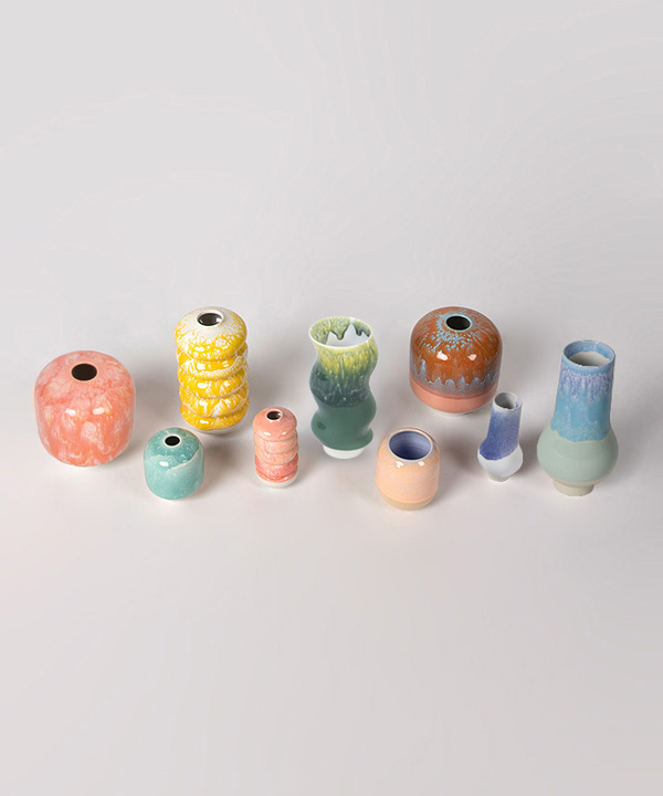100316. Danish Pottery soft vase set