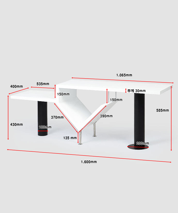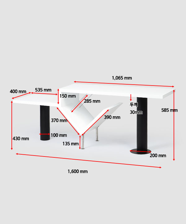 w 1,600 x d 400 x h 585 mm
