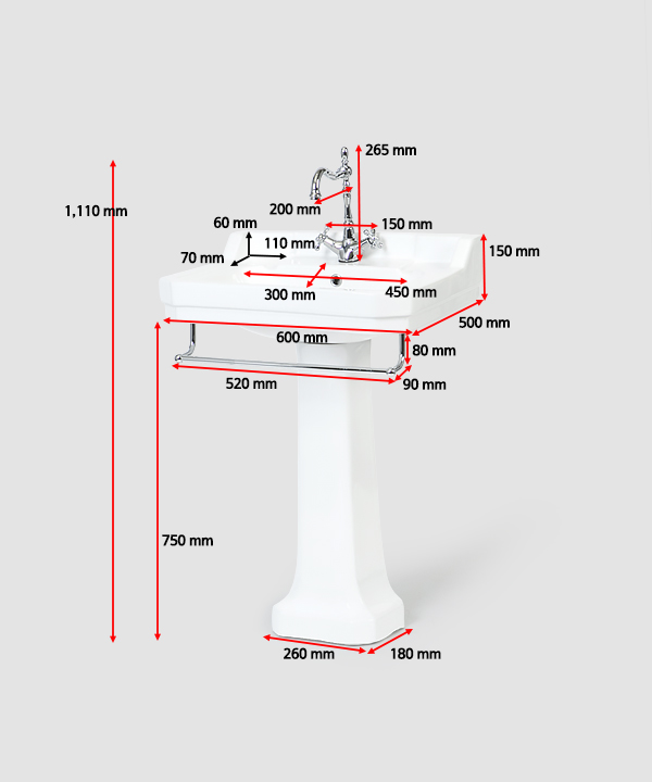 w 600 x d 500 x h 1,110 mm