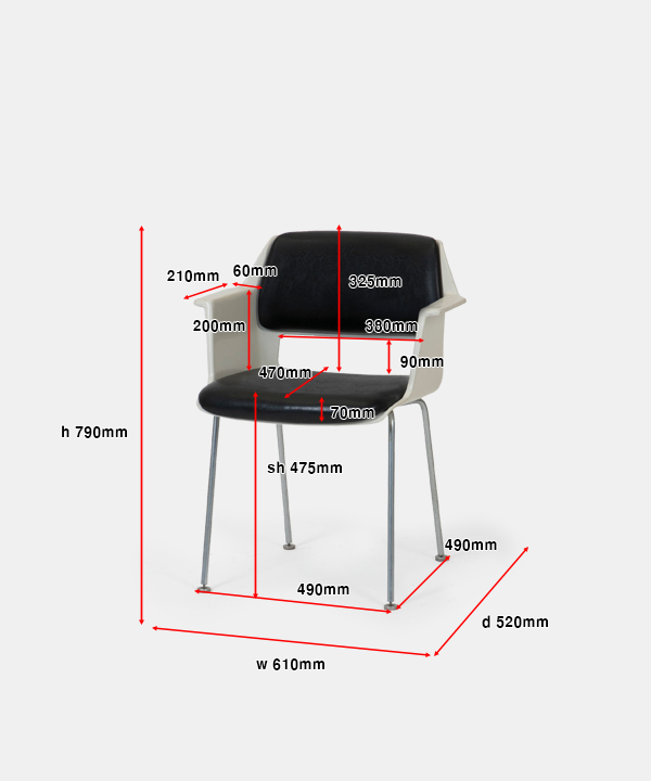 w 610 x d 520 x h (sh 475) 790 mm 1970년대