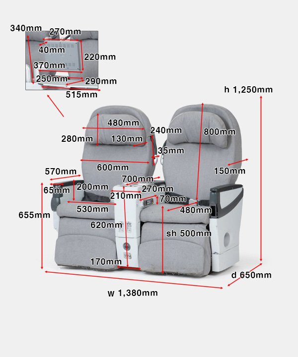 w 1,380 x d 650 x h (sh 500) 1,250 mm