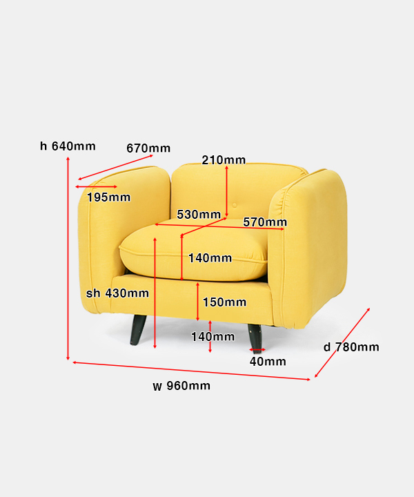 w 960 x d 780 x h (sh 430) 640 mm