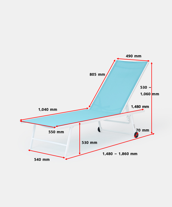 w 550 x d 1,480~1,860 x h 530~1,060 mm